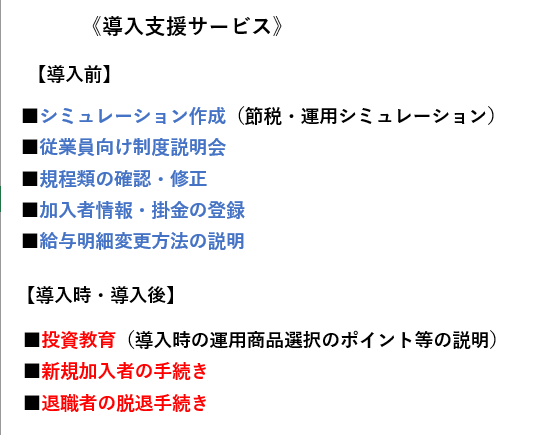 さらに、投資勉強会や個別相談を通じて、従業員の皆様が安心して資産形成を進められるよう支援します。